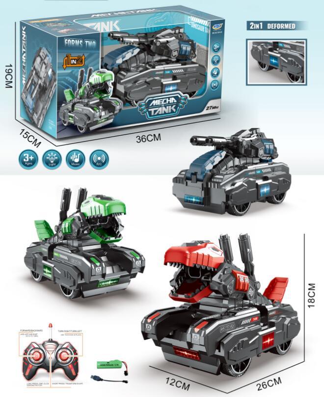 2 in 1 transforming design with tank and dinosaur modes.
